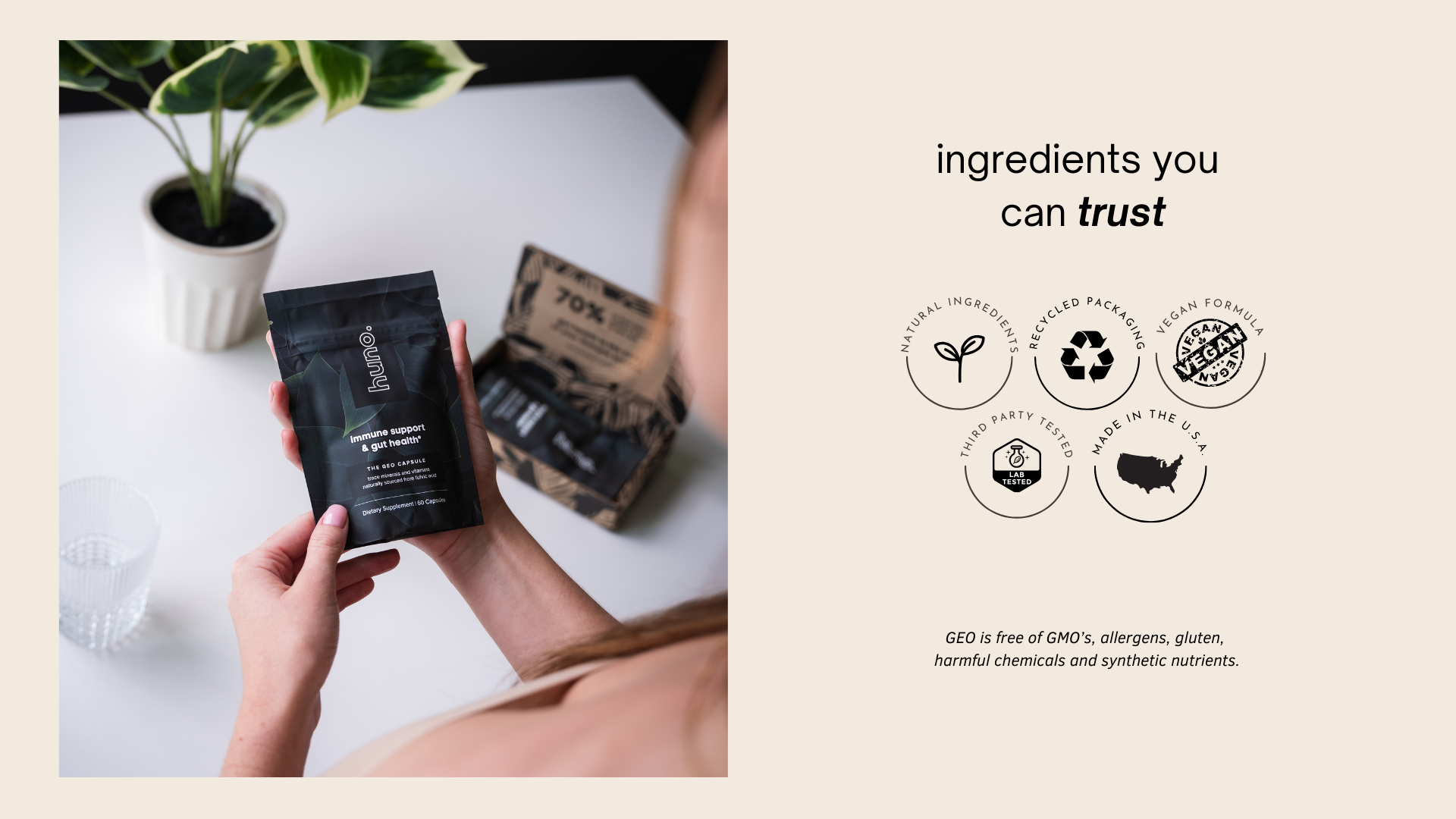 GEO is free from GMOs, allergens, gluten, harmful chemicals, and synthetic nutrients.